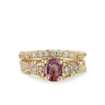 A soft contoured diamond wedding band to fit with our 3mm diamond or sapphire engagement rings. Available in white and yellow gold, with or without sparkling brilliant cut diamonds.
